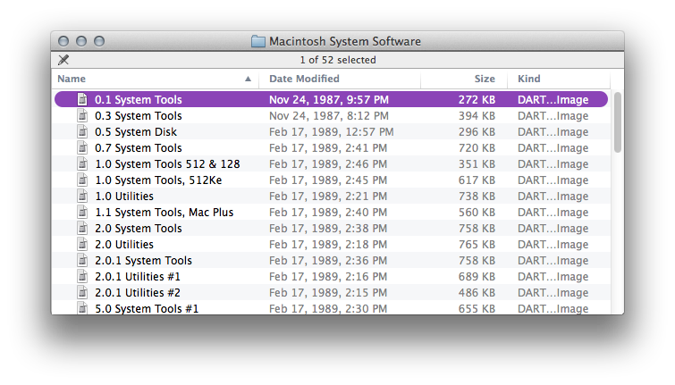Jackpot! This developer disk lists versions of the System Software all the way back to v0.1. Sadly, booting up the 0.1 System Tools image reveals that it’s really System 1.1/Finder 1.1g.